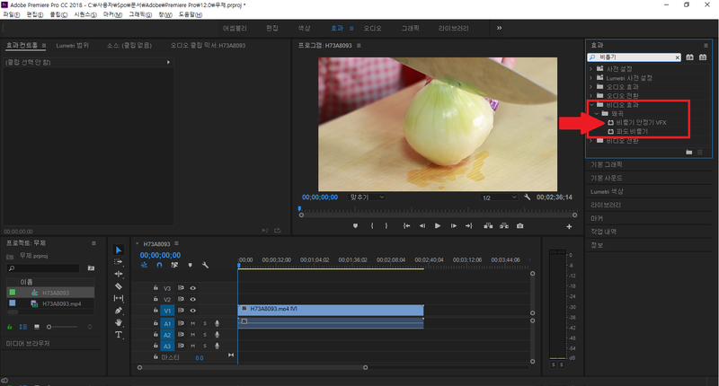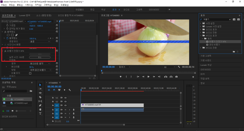 그리고 효과탭을 눌러서 흔들림을 보정할수 있는 효과를 찾아서 넣도록 하겠습니다.